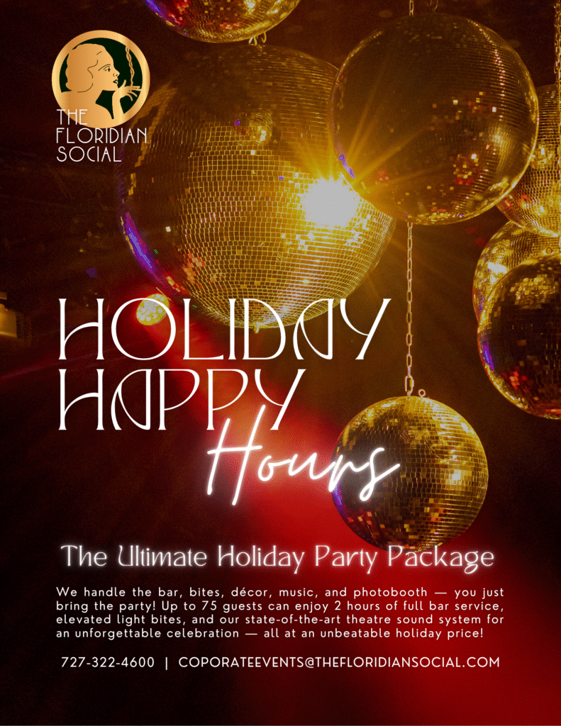 Welcome to The Floridian Social, the ultimate venue for hosting your special moments in downtown St. Petersburg. Our stunning Art Deco-inspired space can accommodate events ranging for 50 to 400 guests, offering both semi-private and private options.